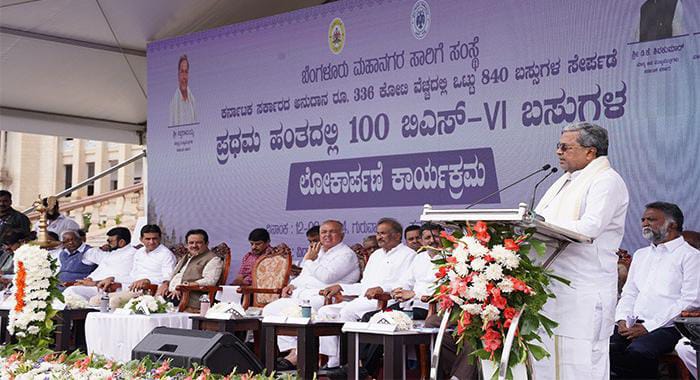 ಶಾಲಾ ಮಕ್ಕಳನ್ನು ಹೊತ್ತ ಬಸ್ ನಲ್ಲಿ ಬೆಂಕಿ:25 ಮಂದಿ ದುರ್ಮರಣ Read Moreವಿಧಾನಸೌಧದ ಗ್ರಾಂಡ್ ಸ್ಟೆಪ್ಸ್ ಬಳಿ ಸಾರಿಗೆ ಇಲಾಖೆ ಆಯೋಜಿಸಿದ್ದ ಕಾರ್ಯಕ್ರಮದಲ್ಲಿ 100 ನೂತನ BMTC ಬಸ್ ಗಳನ್ನು ಸಿಎಂ ಸಿದ್ದರಾಮಯ್ಯ ಲೋಕಾರ್ಪಣೆ ಮಾಡಿದರು.