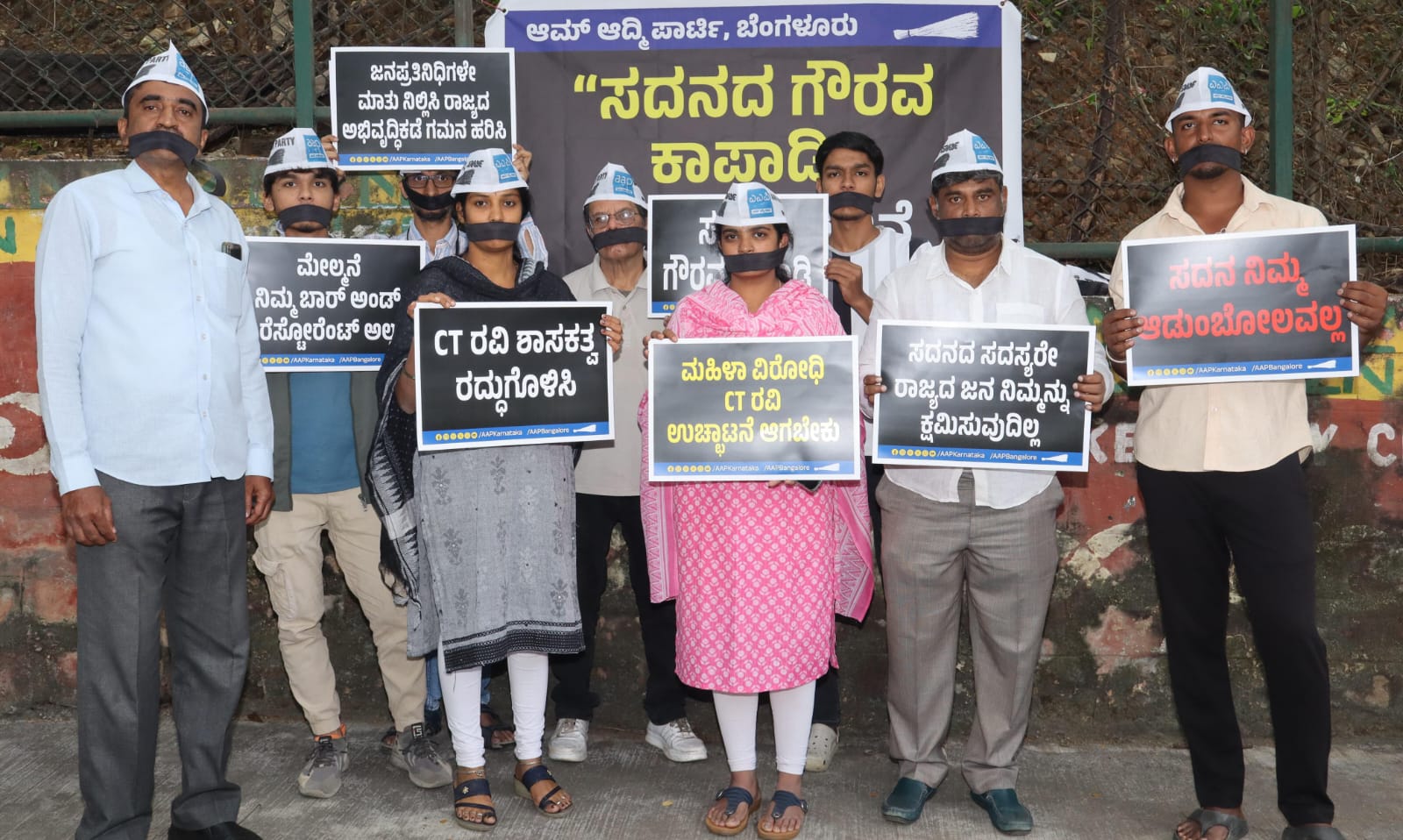 ಸಿ.ಟಿ ರವಿ ಪ್ರಕರಣ ಸಿಐಡಿಗೆ: ಪರಮೇಶ್ವರ್ಸ್ಪಷ್ಟ ನುಡಿ Read Moreಆಮ್ ಆದ್ಮಿ ಪಕ್ಷದ ಕಾರ್ಯಕರ್ತರು ಪಕ್ಷದ ಕಚೇರಿ ಮುಂಭಾಗದಲ್ಲಿ ಮಂಗಳವಾರ ಹಮ್ಮಿಕೊಂಡಿದ್ದ ಕಪ್ಪು ಪಟ್ಟಿ ಧರಿಸಿ ಖಂಡನೆ ಸಭೆಯಲ್ಲಿ ಸಿ.ಟಿ.ರವಿ ಮತ್ತು ಬಸವರಾಜ ಹೊರಟ್ಟಿ ವಿರುದ್ದ ಬೇಸರ ವ್ಯಕ್ತಪಡಿಸಿದರು.