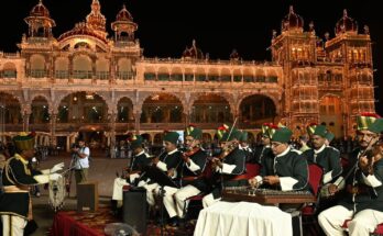 ವಿಶ್ವ ವಿಖ್ಯಾತ ದಸರಾ ಜಂಬೂ ಸವಾರಿ ಮೆರವಣಿಗೆಗೆ ಕ್ಷಣಗಣನೆ Read Moreಮೈಸೂರು ದಸರಾ ಮಹೋತ್ಸವ ಹಿನ್ನಲೆಯಲ್ಲಿ ಹಮ್ಮಿಕೊಂಡಿದ್ದ ಪೊಲೀಸ್ ಮಾಸ್ ಬ್ಯಾಂಡ್ ಹಲವಾರು ಬಗೆಯ ನಾದದ ಮೂಲಕ ಜನ ಮೈಮರೆತು ಆಲಿಸುವಂತೆ ಮಾಡಿತು.