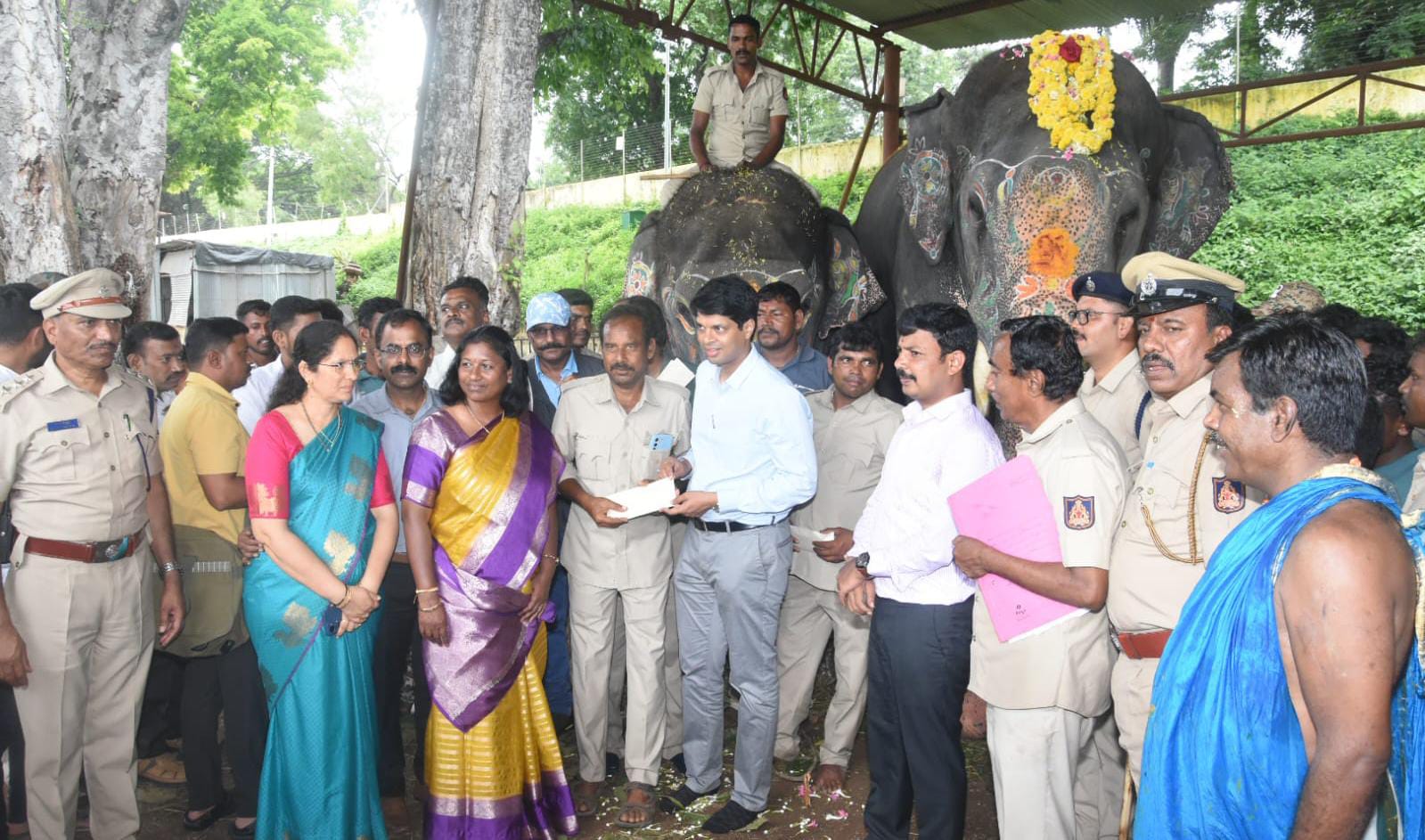 ಕ್ಯಾಪ್ಟನ್ ಅಭಿಮನ್ಯು ಬಹು ಬಲಶಾಲಿ Read Moreಶ್ರೀ ದುರ್ಗಾ ಫೌಂಡೇಶನ್ ಹಾಗೂ ಡಾಕ್ಟರ್ ಎಂ ಶಾಂತ ರಾಮಕೃಷ್ಣ ಅಭಿಮಾನಿ ಬಳಗದವರು ಗಜಪಡೆಯ ಮಾವುತ ಮತ್ತು ಕಾವಡಿಗಳ ಕುಟುಂಬದ ಮಹಿಳೆಯರಿಗೆ ಬಾಗಿನ ನೀಡಿದರು