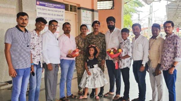 ಭಾರತೀಯ ಸೇನೆಯಲ್ಲಿ 24 ವರ್ಷ ಸೇವೆ ಸಲ್ಲಿಸಿ ತವರೂರಿಗೆ ವಾಪಸಾದ ಮೈಸೂರು ನಗರದ ಸೈನಿಕ ಗಿರೀಶ್ ಆರಾಧ್ಯ ಅವರನ್ನು ನಗರದ ರೈಲ್ವೆ ನಿಲ್ದಾಣದಲ್ಲಿ ಅದ್ದೂರಿಯಾಗಿ ಸ್ವಾಗತಿಸಲಾಯಿತು.