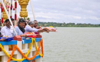 ಕಬಿನಿ ಜಲಾಶಯಕ್ಕೆ ಮುಖ್ಯ ಮಂತ್ರಿ ಸಿದ್ದರಾಮಯ್ಯ,ಉಪ ಮುಖ್ಯ ಮಂತ್ರಿ ಡಿ.ಕೆ.ಶಿವಕುಮಾರ್ ಮತ್ತಿತರರು ಬಾಗಿನ ಅರ್ಪಣೆ ಮಾಡಿದರು.
