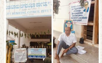 ಹುಣಸೂರು ನಗರಸಭೆ ಪೌರಾಯುಕ್ತರ ವಿರುದ್ಧ ಏಕಾಂಗಿ ಧರಣಿ ನಡೆಸಿದ ಸದಸ್ಯ