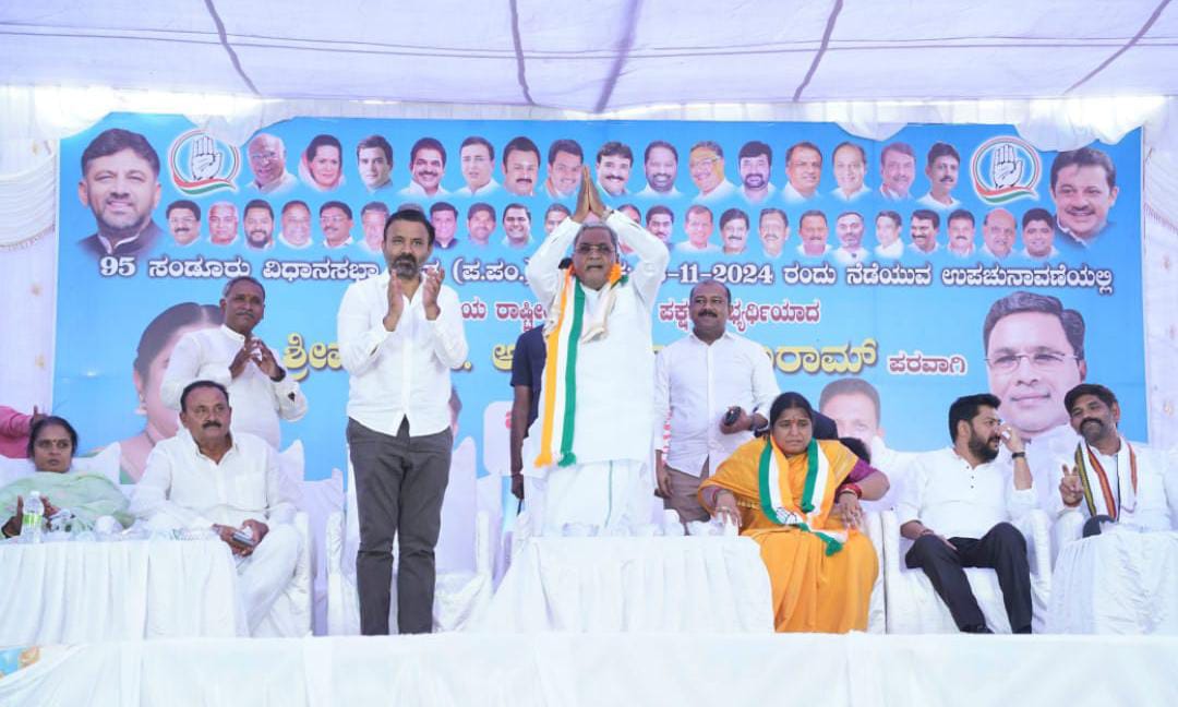 ಸಂಡೂರು ವಿಧಾನಸಭಾ ಕ್ಷೇತ್ರದ ಮೆಟ್ರಿಕಿ ಗ್ರಾಮದಲ್ಲಿ ಕಾಂಗ್ರೆಸ್ ಅಭ್ಯರ್ಥಿ ಪರ ಬೃಹತ್ ಜನಸಮಾವೇಶವದಲ್ಲಿ ಸಿಎಂ ಸಿದ್ದರಾಮಯ್ಯ ಮಾತನಾಡಿದರು.