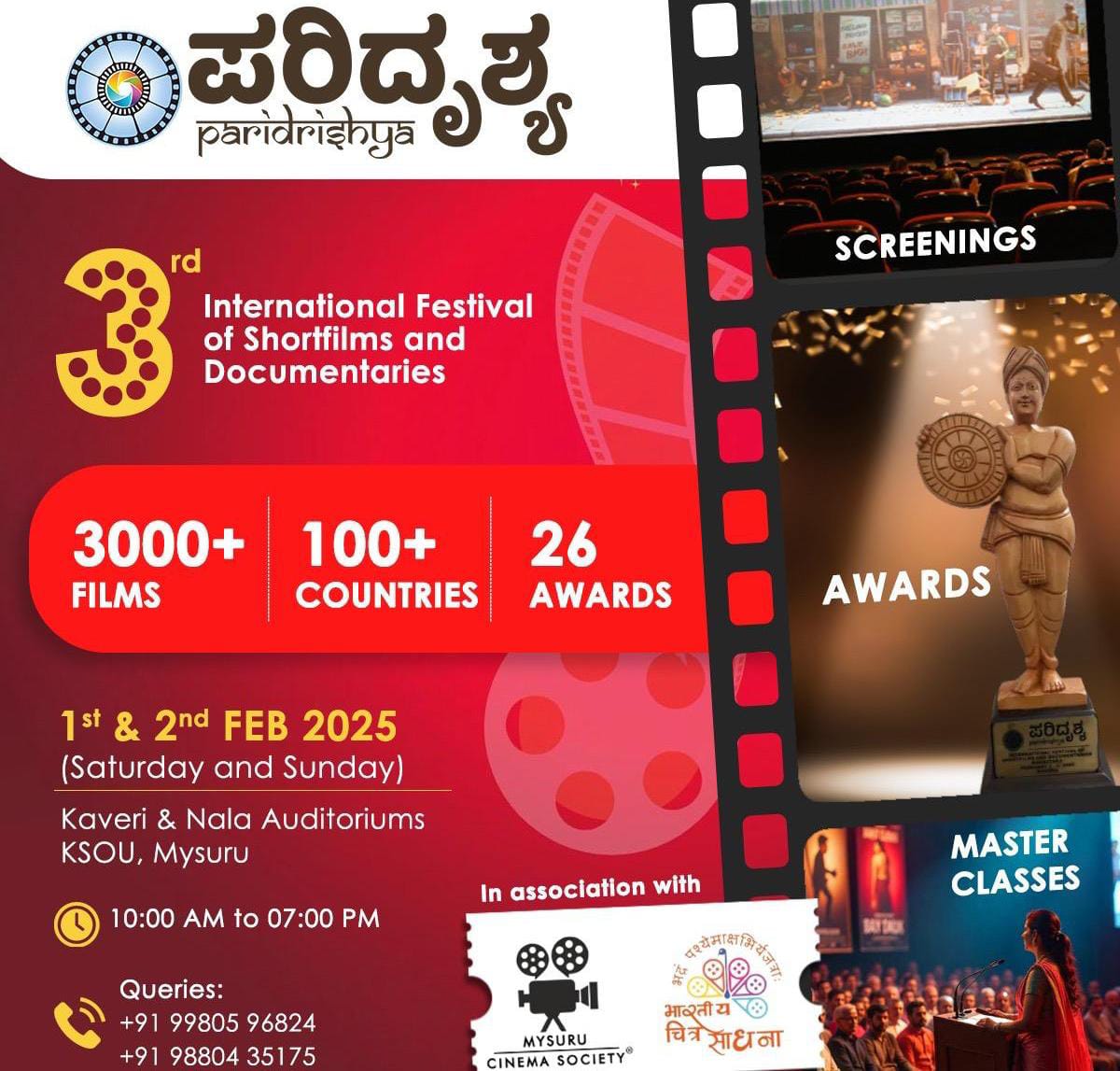 12:20 ಪ್ರಶ್ನೋತ್ತರ, ಪ್ರೇಕ್ಷಕರ ಪ್ರತಿಕ್ರಿಯೆ ಇರಲಿದೆ ಎಂದು ಪ್ರಕಟಣೆಯಲ್ಲಿ ಕಿರು ಚಿತ್ರೋತ್ಸವದ ನಿರ್ದೇಶಕಿ ಶಾಂತಲಾ ದಾಮ್ಲೆ ತಿಳಿಸಿದ್ದಾರೆ.