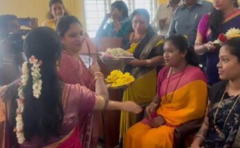 ಮಹಿಳಾ ಮತ್ತು ಮಕ್ಕಳ ಅಭಿವೃದ್ಧಿ ಇಲಾಖೆ, ಶ್ರೀ ದುರ್ಗಾ ಫೌಂಡೇಶನ್ ಮತ್ತು ಕೆ ವಿ ಕೆ ಫೌಂಡೇಶನ್ ವತಿಯಿಂದ ಹಮ್ಮಿಕೊಂಡಿದ್ದ ಸಾಮೂಹಿಕ ಸೀಮಂತ ಕಾರ್ಯಕ್ರಮದಲ್ಲಿ ಪುಷ್ಪಾ ಅಮರನಾಥ್ ಬಾಗಿನ ನೀಡಿದರು.