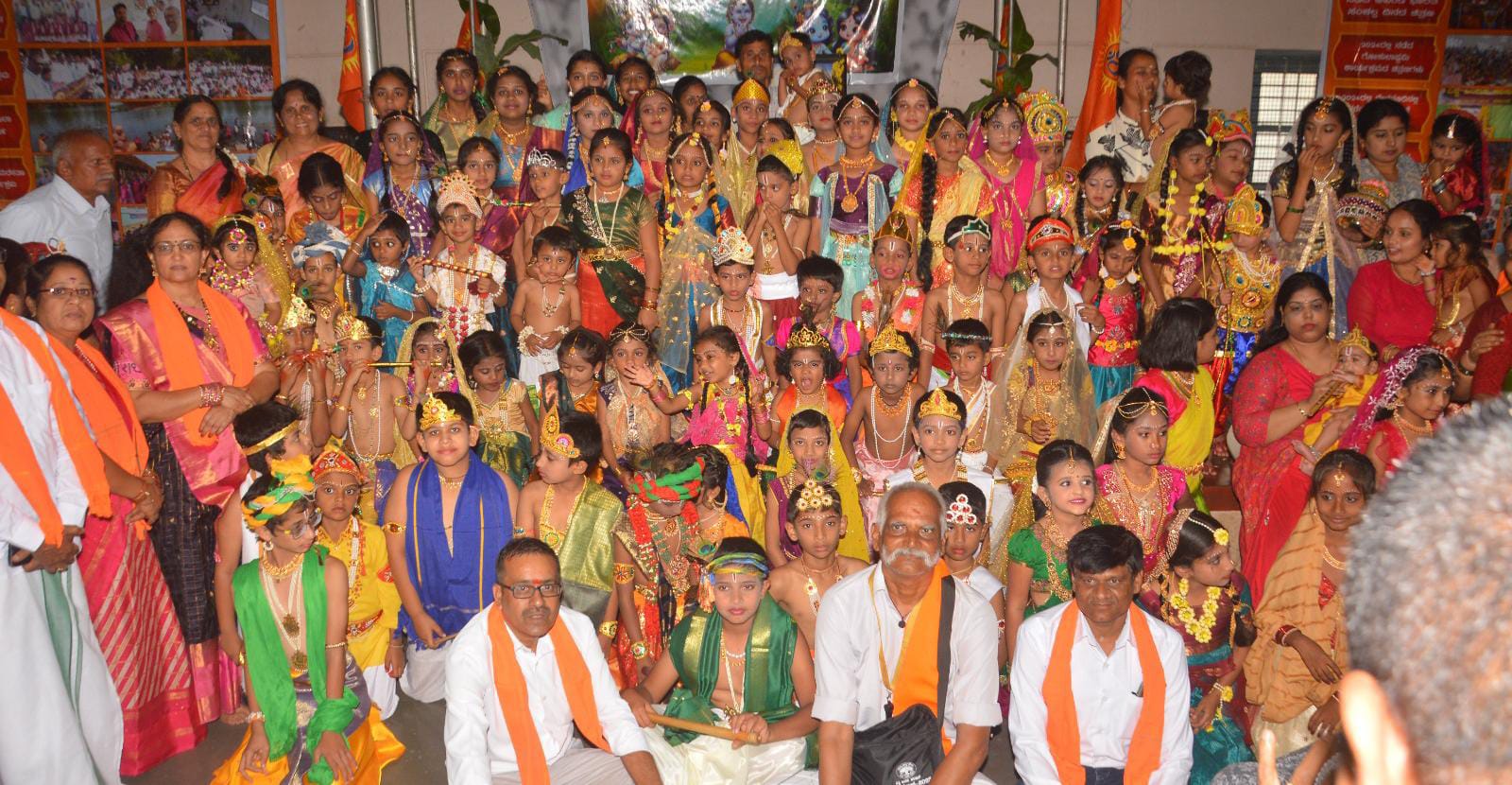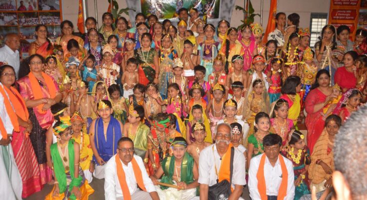 ಮೈಸೂರು: ನಂಜನಗೂಡಿನ ಶಂಕರಮಠದಲ್ಲಿ ವಿಶ್ವ ಹಿಂದೂ ಪರಿಷತ್ 61 ನೇ ವರ್ಷದ ಸ್ಥಾಪನ ದಿನಾಚರಣೆ ಅಂಗವಾಗಿ ರಾಧಾ – ಕೃಷ್ಣ ವೇಷ ಭೂಷಣ ಸ್ಪರ್ಧೆ ಆಯೋಜಿಸಲಾಗಿತ್ತು.