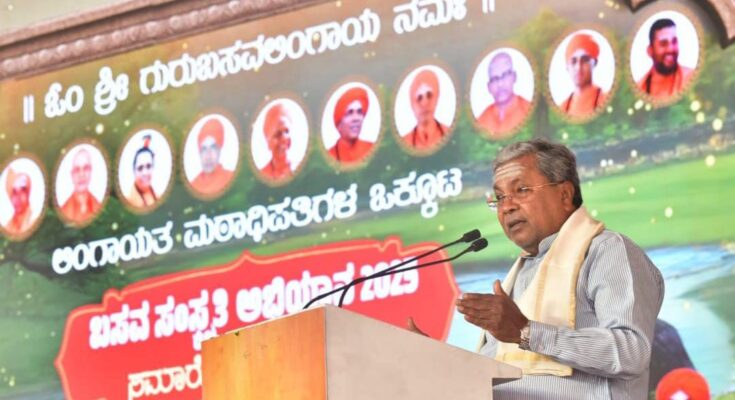 ಅರಮನೆ ಮೈದಾನದಲ್ಲಿ ನಡೆಯುತ್ತಿರುವ ಬೃಹತ್ ಕಾರ್ಯಕ್ರಮದಲ್ಲಿ ವಿಶ್ವಗುರು ಬಸವಣ್ಣ ಅವರನ್ನು ಕರ್ನಾಟಕ ಸಾಂಸ್ಕೃತಿಕ ನಾಯಕ ಎಂದು ಘೋಷಿಸಿದ ವರ್ಷಾಚರಣೆ ಸಂದರ್ಭವಾಗಿ ಆಯೋಜಿಸಿದ್ದ ‘ಬಸವ ಸಂಸ್ಕೃತಿ ಅಭಿಯಾನ-2025’ ರ ಸಮಾರೋಪ ಸಮಾರಂಭದಲ್ಲಿ ಶರಣ ಸಂಸ್ಕೃತಿಯ 301 ಶರಣರು, ಗುರುಗಳು, ಸ್ವಾಮೀಜಿಗಳ ಸಾನಿದ್ಯದಲ್ಲಿ ಸಮುದಾಯದವರ ಸಮ್ಮುಖದಲ್ಲಿ ಸನ್ಮಾನ ಸ್ವೀಕರಿಸಿ ಸಿಎಂ ಮಾತನಾಡಿದರು.