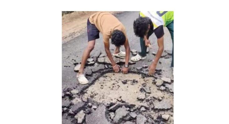 ಯುವಕರು ತಮ್ಮ ಕೈನಲೇ ಡಾಂಬರು ಕೀಳುತ್ತಿರುವ ದೃಶ್ಯ ಕಣ್ಣಿಗೆ ರಾಚುತ್ತಿದೆ ಇದಕ್ಕಿಂತಲೂ ಹೆಚ್ಚಿನ ಸಾಕ್ಷಿ ಬೇಕೆ ಎಂದು