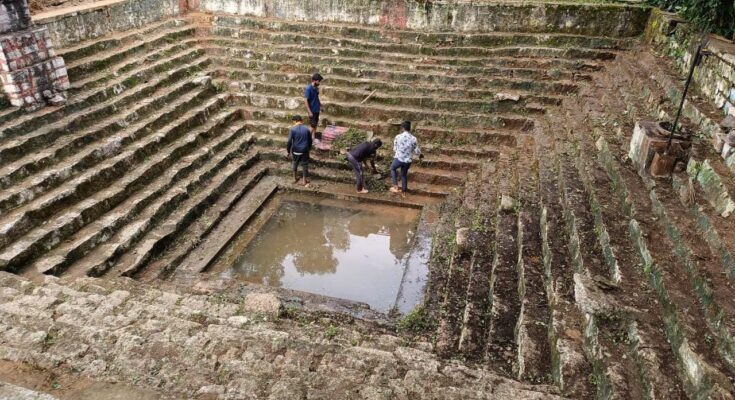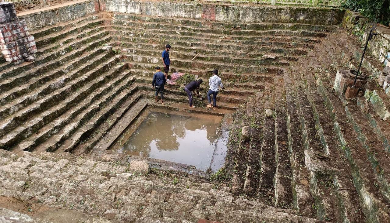 ಕಲ್ಯಾಣಿಯ ಮೆಟ್ಟಿಲುಗಳ ಸುತ್ತ ಬೆಳೆದಿದ್ದ ಗಿಡಗಂಟಿಗಳನ್ನು ತೆರವು ಮಾಡುವ ಮೂಲಕ ಕಲ್ಯಾಣಿ ಸ್ವಚ್ಚತೆಯನ್ನು ಮಾಡಲಾಯಿತು.
